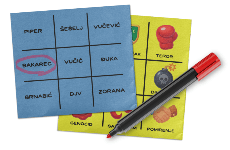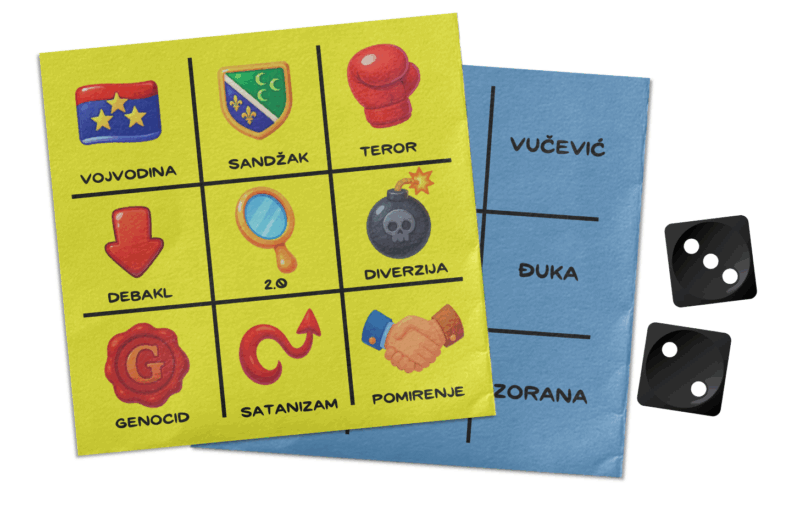 Oktobar 2025. prošao je u znaku priprema za obeležavanje prve godišnjice novosadske tragedije. Studenti iz čitave Srbije krenuli su peške ka Bulevaru Jaše Tomića u Novom Sadu, a pratile su ih – osim pobunjenih građana – i manipulacije državnih tabloida i državnih zvaničnika. Međutim, dijapazon tih obmana toliko je predvidljiv, prežvakan i neinventivan da su jedina otvorena pitanja redosled manipulisanja i raspored uloga. Dok i dalje čekamo lokalizovanu verziju „Monopola“ s Generalštabom, BGH20, Ćacilendom, nacionalnim stadionom, najsavremenijom železničkom stanicom u Novom Sadu i rudnikom litijuma u Jadru, možda bismo mogli da adaptiramo „Bingo“ spram ovdašnjih medijskih prilika.