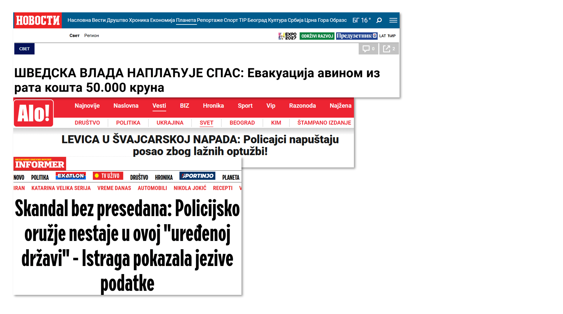 Vesti sa portala Srpski ugao u prorežimskim tabloidima