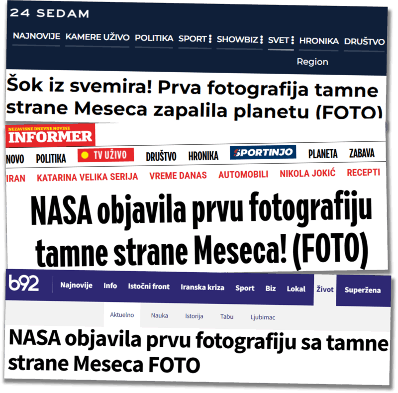 Nekoliko domaćih medija je, oslanjajući se na objavu Bele kuće i Nase, prenelo da je Nasa „objavila prvu fotografiju tamne strane Meseca“. Međutim, ta „ekskluziva“ desila se pre skoro sedam decenija, kada je u oktobru 1959. sovjetska Luna 3 zabeležila izgled tamne strane našeg satelita.